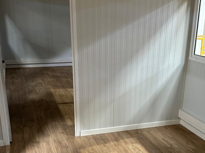 RÉALISATION : Création de bureaux dans un centre logistique, pose de cloisons, électricité et parquet flottant.