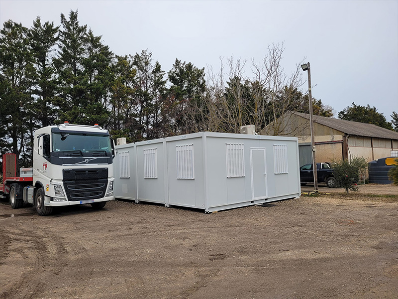 PRESTATION : LocationLIEU : Jonquières St Vincent (30)DÉLAIS : 2 semainesSURFACE : 60 m²RÉALISATION : Pose de 60m² de bureaux en location pour SARL Camargue TP.