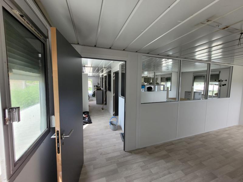 LIEU : Bagnols sur Cèze (30)RÉALISATION : Pose d’un faux-plafond, de cloisons modulaires 1/2 vitrées, changement du sol et plomberie.